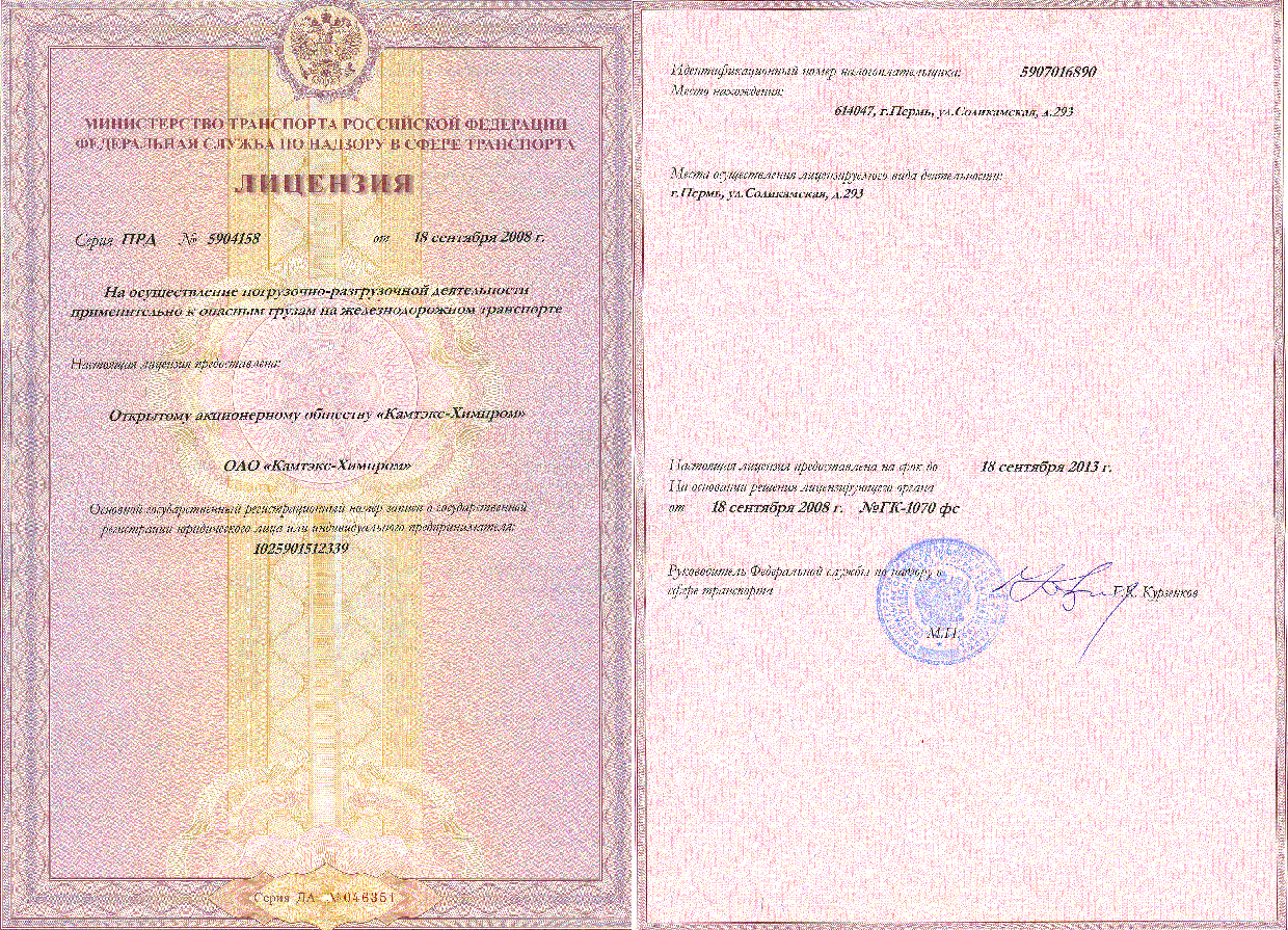 Лицензия на осуществление эксплуатации взрывопожароопасных и химически опасных производственных объектов I, II и III классов опасности